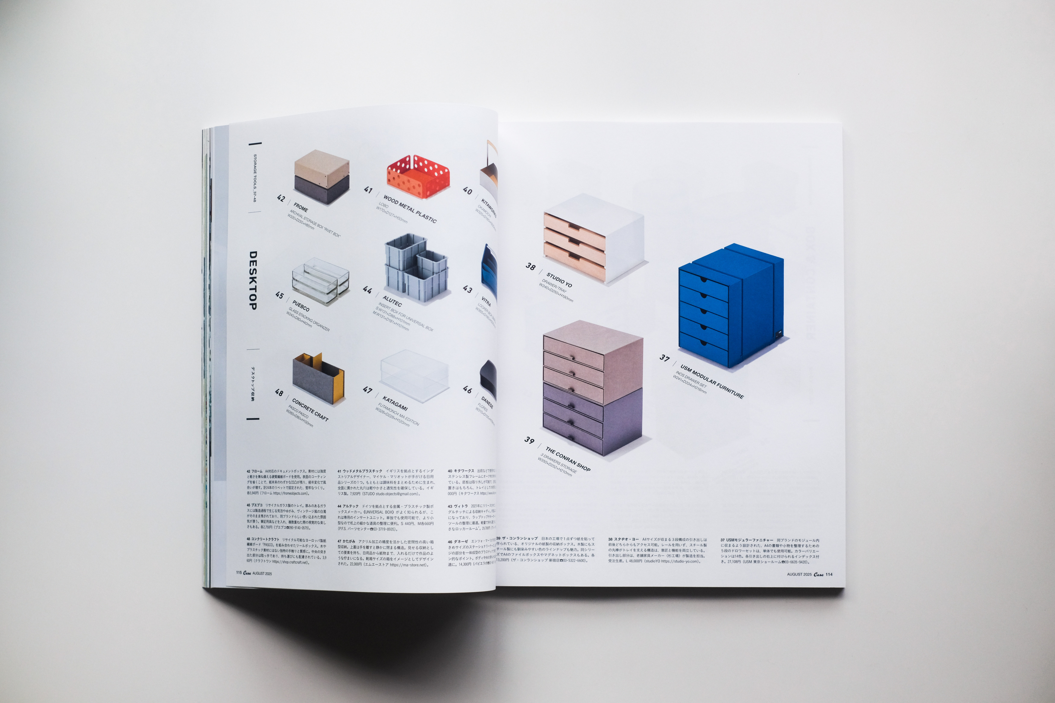 2025.07.277月発売のCASA BRUTUS No. 304 [収納とインテリア] 特集ページに〈DRAWER/TRAY〉を掲載いただいてます。セレクト、スタイリングは中田由美さん。いつもお声がけ、ありがとうございます。元々は杉工場の製品として生まれたものだったけど、今年からSTUDIO YOのオリジナルとして再スタートを切ることとなった〈DRAWER/TRAY〉(引き出しの生産は変わらず杉工場)。受注生産という形ではあるが、2017年の発表から8年の時を経て、またこうしてデザインが日の目を見られたことがとても有り難い。折角なのでデザインの細かいところもブラッシュアップしたいところ。BASEオンラインショップからでも、メールでの問い合わせでも、オーダー・特注等を受け付けているので、ご興味ある方はお気軽にお問い合わせください。